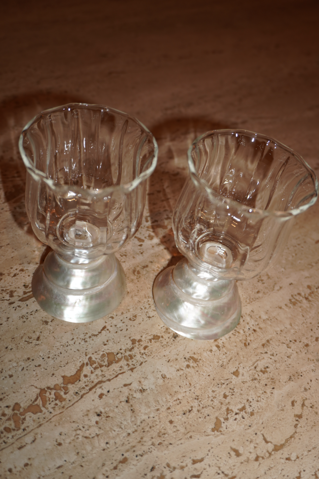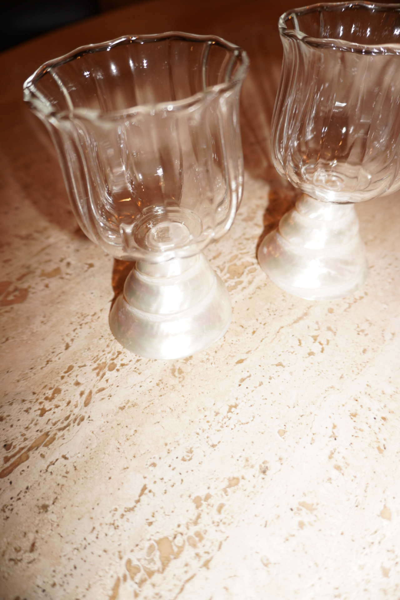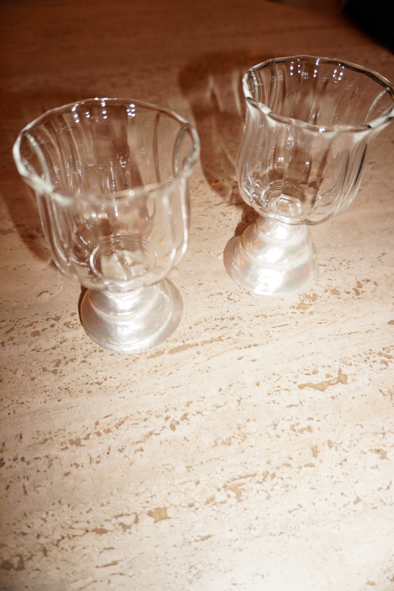 The Maris Glassware features beautifully crafted cocktail glasses elevated by a natural seashell stem, celebrating the effortless beauty of the sea. Designed to serve your favorite mixed drinks, wine, or signature pours, each glass blends organic texture with refined glassware for a truly unique statement. Perfect for entertaining, the Maris Glassware brings a coastal, elevated touch to every sip.