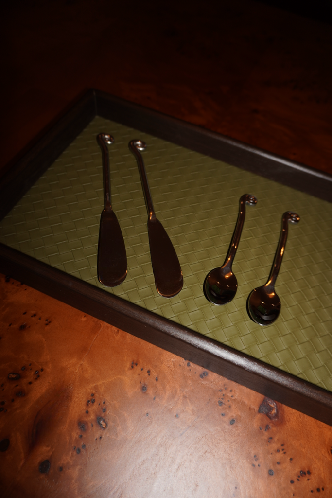 Created to be truly multipurpose, the Vale Tray transforms even the simplest routines into something intentional. Use it to display your favorite jewelry, elevate a candle vignette, or serve a morning coffee with ease. On a coffee table, it layers beautifully over stacked books; on a nightstand or vanity, it keeps daily essentials gathered and grounded.