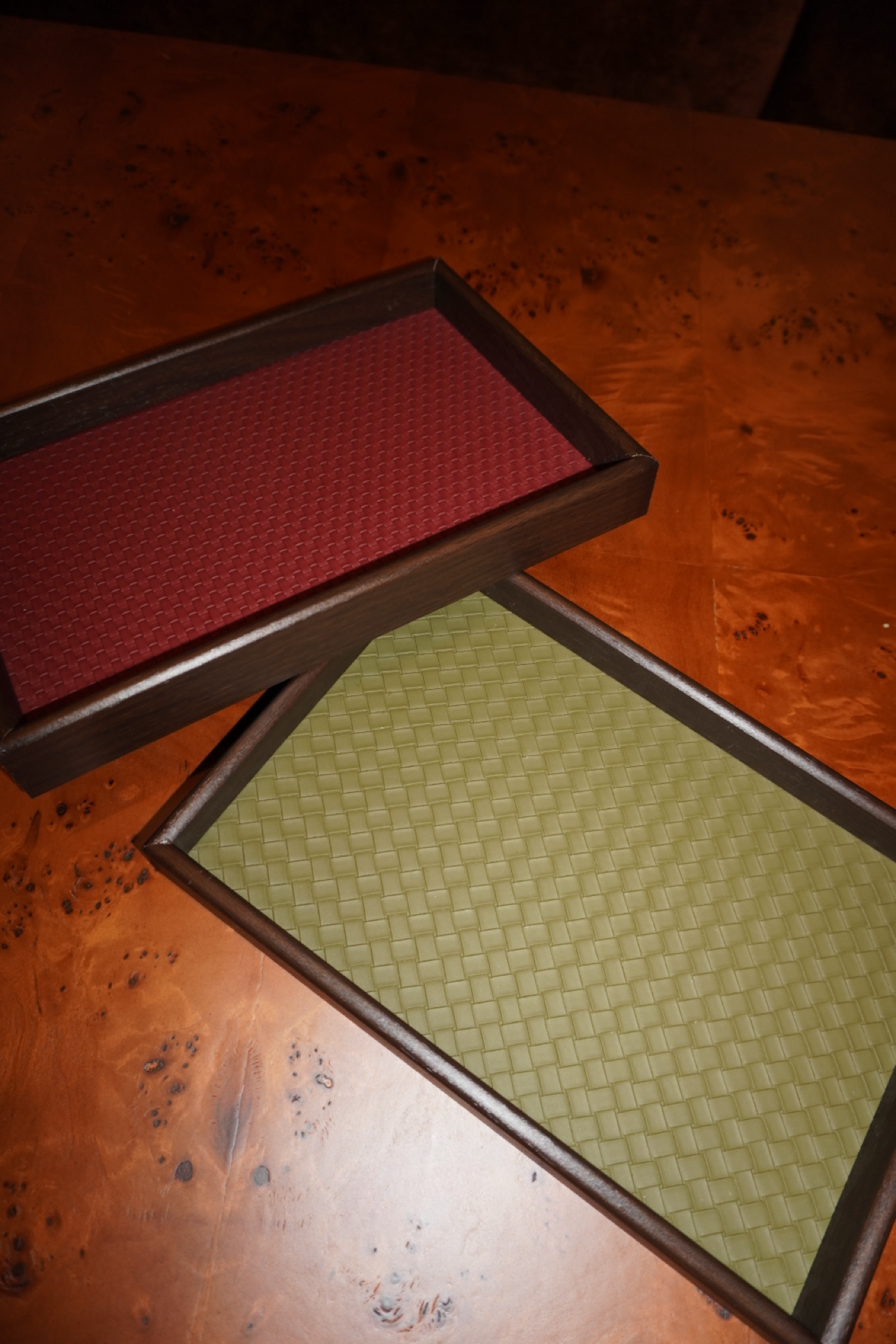 Thoughtfully designed and beautifully functional, the Vale Tray is your new everyday essential. Framed in smooth, natural wood and lined with soft faux leather, it brings warmth, texture, and quiet sophistication to any corner of your home. Available in two rich, saturated shades—Avocado and Pomegranate—it’s a statement piece that still plays well with every style.